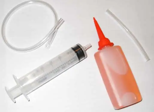 Lieferumfang: Spritze, Schläuche und Mineralöl